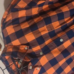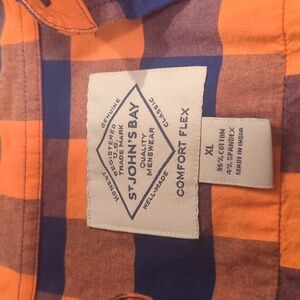 St. John's Bay Short Sleeve Plaid Shirt Men's XL Orange Navy Comfort Flex VGC