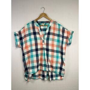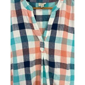 St Johns Bay Short Sleeve Relaxed Checkered Plaid Shirt - Size Large Linen