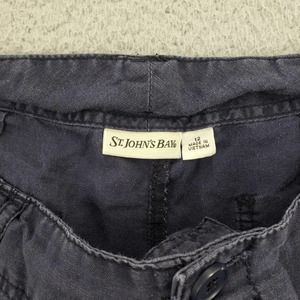 St John's Bay Shorts Womens 12 Linen Blue Cargo Utility Flat Front Pockets