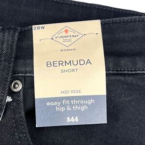 St John’s Bay Shorts Womens 28W Black Bermuda Rolled Cuff Tummy Control Denim