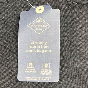 Craft your casual ensemble with the timeless St. John's Bay Bermuda shorts, designed for both comfort and style. The classic black denim is complemented by a flattering high-rise waist and a versatile rolled cuff, making these shorts a perfect transition piece for fall, spring, and summer. Tailored with a 5-pocket design, they are as practical as they are stylish, featuring tummy control and a slight stretch for a slimming effect. Experience the blend of function and fashion with these St. John's Bay shorts. Whether you're enjoying a beach day, going for a walk, or hitting the road, their dark fabric wash and solid pattern make them an ideal match for various occasions and a staple for any wardrobe. The machine-washable material ensures easy care, so you can look sharp and feel comfortable without the fuss.