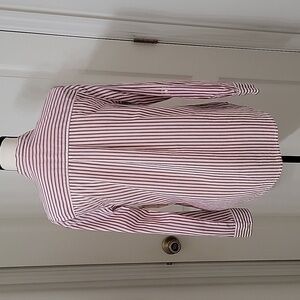 St. John's Bay Size M White with Faded Blue & Red Striped Button Down Shirt NEW with Tag. Summery, Nautical and Patriotic! Long Sleeve with Button Cuffs. 2 Front Chest Pockets with Button Closure. Point Collar. Please refer to measurements in photos to ensure proper fit. Shown on size 6 mannequin.