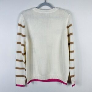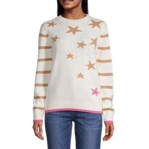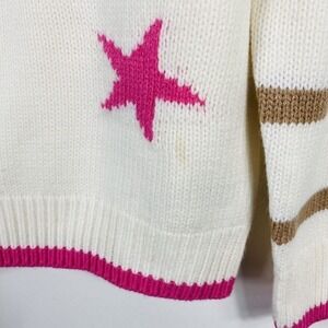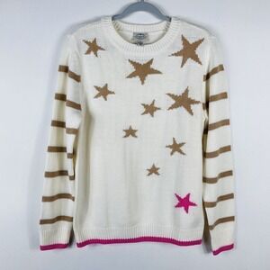 St John's Bay Size Medium Stars Print Striped Sleeve Pullover Sweater Cream Pink
