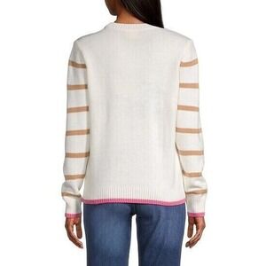 Women's St John's Bay cream/pink/tan star print sweater with striped sleeves