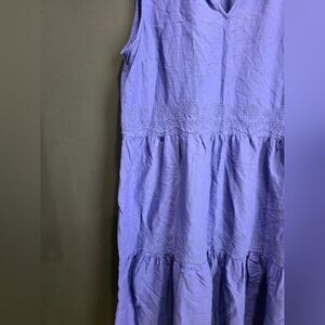 St. John's Bay Sleeveless Scalloped Embroidered A-Line Dress Cotton Sz L Purple