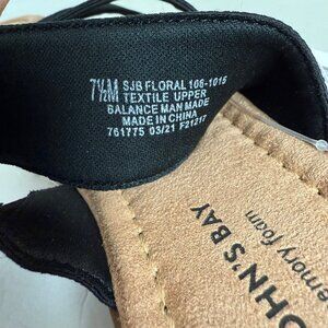 Step out in style with these trendy St John Bay Strappy flat sandals. They are a slip-on closure make them a perfect fit for any occasion. The sandals feature a black elastic strap design across the top and sides, providing a secure fit. Memory foam sandals are designed to offer cushioning and support, making them suitable for everyday wear. These sandals are part of the St. John's Bay brand, known for its sportswear and casual wear. Whether you are going out for a casual day or dressing up for a night out, these sandals are sure to add a touch of elegance to your outfit.