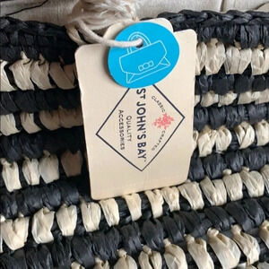 St. John’s Bay Straw Woven Tote Bag Black, Ivory, Natural NWT