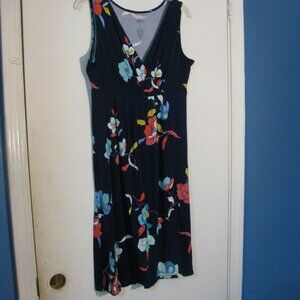 St John's Bay dress in size medium. New without tags, this pretty dress is velvety soft with lots of stretch. V neckline sleeveless dress in navy blue. Pretty floral print in red, blue, white and aqua. No pockets, zippers or buttons, easy pop on and go style. Made from 95% rayon and 5% spandex, machine wash.