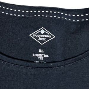 St John's Bay Super Black Essential Tee Short Sleeve Ribbed Crewneck XL Cotton