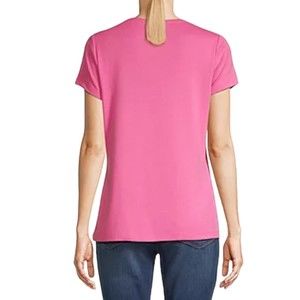 St John's Bay Super Pink Essential Tee Short Sleeve Ribbed Crewneck M Cotton