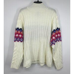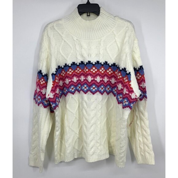 St. Johns Bay Sweater Womens Plus 3X White Fair Isle Mock Turtleneck Cable Knit. New with tags.