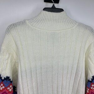 St. Johns Bay Sweater White Fair Isle Mock Turtleneck Cable Knit