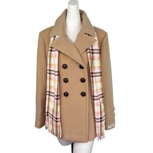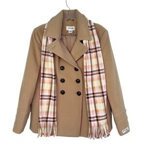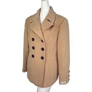 St. John's Bay Tan Double Breasted Peacoat Wool Cashmere Blend Woman's Sz Large
