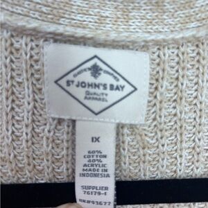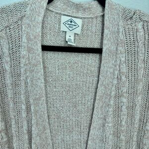 St. John's Bay Tan and White Cozy Open Front Cable Knit Cardigan