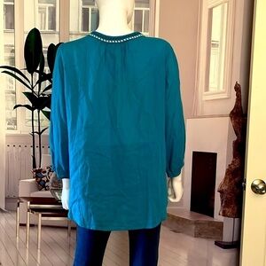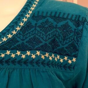 St John’s Bay Teal Embroidered Peasant Top. Size L. P63/A2295