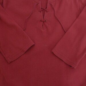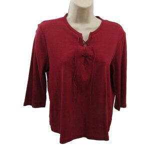 St John's Bay Top Petite Large Laced V-Neck Front Pullover Burgundy 3/4 Sleeve