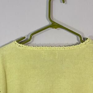 St Johns Bay Top Womens XL Yellow/Green V-Neck Knit Crochet 3/4 Sleeve Cottage