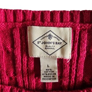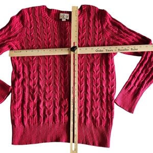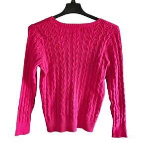 St. John's Bay Women's Fuchsia V-Neck Cable Knit Pullover Sweater Size Medium