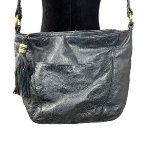 St. John's Bay Vintage Etched Leather Black Crossbody Purse