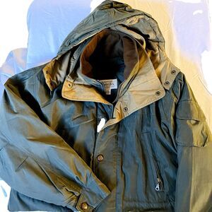 St Johns Bay Vintage Winter Jacket Removable Liner Hood Army Green Quilted M Men
