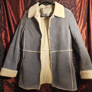 St. John's Bay size small **washable** light blue suede leather coat with warm full sherpa shearling lining. In excellent condition!