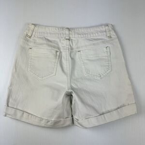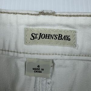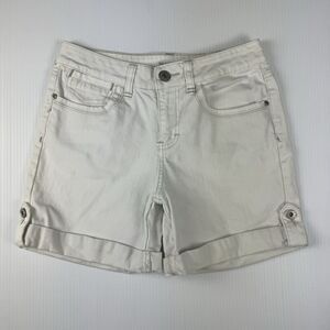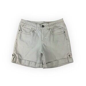 St Johns Bay White Denim Shorts Size 4 Button Cuff Mid Rise