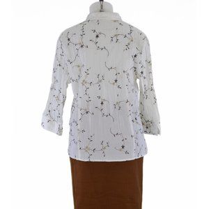 St. John's Bay White Floral 3/4 Sleeve Blouse (XL)