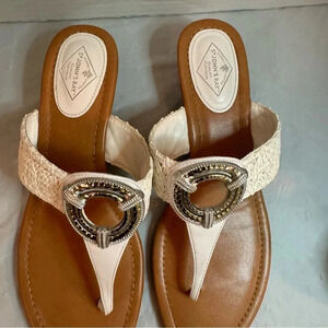 NWOTs St. John's Bay White T-Strap Thong Sandals Circle Ring