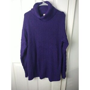 St. Johns Bay woman purple marbles long cable knit sleeve tunic tall large cowl neck sweater in excellent condition no flaws