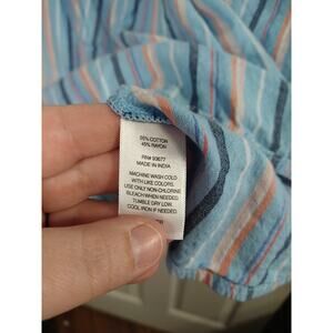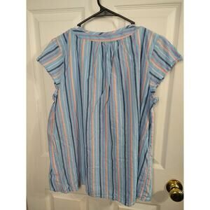 St Johns Bay Woman PXL Pullover Blouse V Neck Striped Blue Cap Sleeve Top