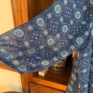 Beautiful, flowy, 3/4 sleeves, front tassel ties, gorgeous pattern. Really nice