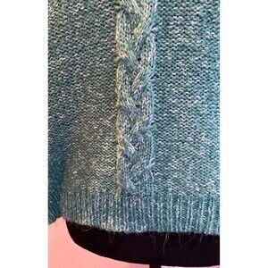 St John’s Bay Woman’s Green Sweater Sz Petite Large V Neck Cable Style SOFT!