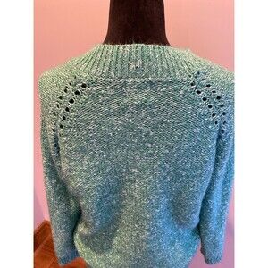 St John’s Bay Woman’s Green Sweater Size Petite Large V Neck Cable Style SOFT!
