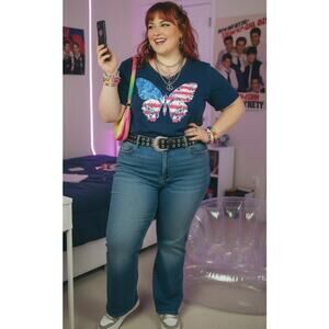 St John's Bay Women's 2x Navy Blue Patriotic Graphic Butterfly Knit T-shirt