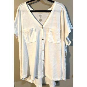 St. John's Bay Women's 3X White Button-Down Cotton Blouse With Front Pockets