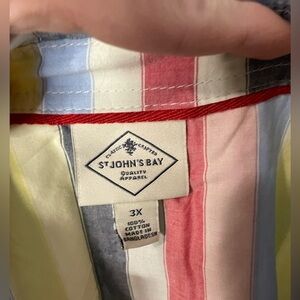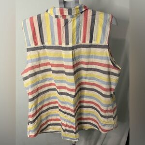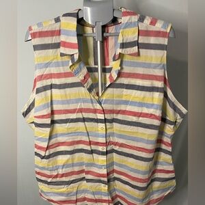 St Johns Bay Womens 3XL Red Yellow Blue White Striped Sleeveless Button Up
