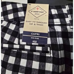 St. Johns Bay Womens Black & White Gingham Capri Pants 16P Mid-Rise Easy Fit Thr