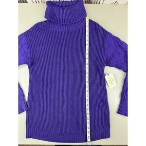 Cozy up in this St. John’s Bay women’s turtleneck sweater, brand new with tags! The rich Melrose Purple color adds a bold pop to any fall or winter wardrobe. Classic ribbed knit body with textured cable knit sleeves for timeless style and warmth.
