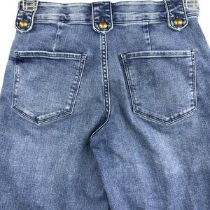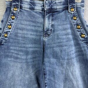 St. John's Bay Women’s Denim Sailor Jeans Wide Leg Button Front Blue Stretch NT