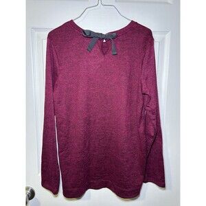 This St. Johns Bay Womens Embroidered Back Tie Keyhole Blouse in size Medium is a versatile and stylish top perfect for various occasions. Made from a comfortable blend of polyester and spandex, this blouse features a round neckline with a keyhole detail and long sleeves for a classic look. The embroidered accents add a touch of elegance, making it suitable for both casual and formal wear. Easy to care for with machine washable instructions, this red blouse is a wardrobe essential for any woman looking for a chic and comfortable piece.