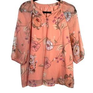 St. John's Bay Women's Floral Chiffon Split Neck Blouse Peach PM