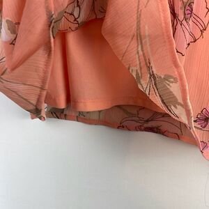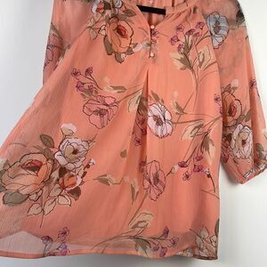St. John's Bay Women's Floral Chiffon Split Neck Blouse Peach Petite Medium