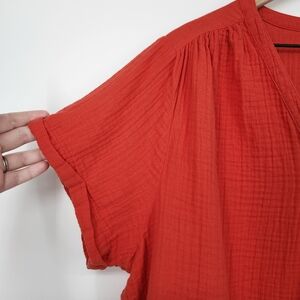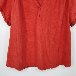 St. Johns Bay Womens Gauzy Top Size 1X Red Orange Cotton Summer Beachy Flowy