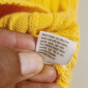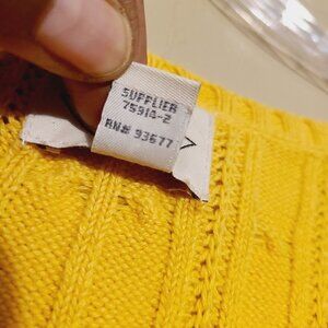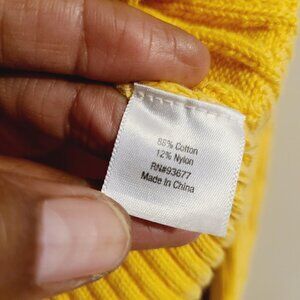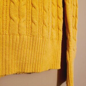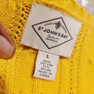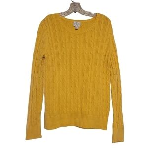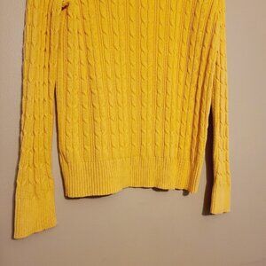 Women's gold or yellow crewneck, cable knit sweater by St. John's Bay, size large. Sweater is a fabric blend of cotton and nylon; slightly stretchy. Excellent pre-owned condition; no flaws.