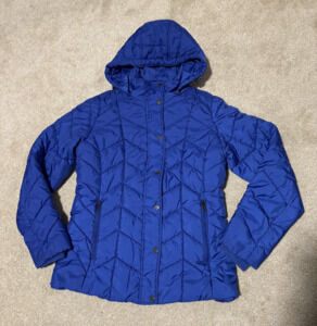 St Johns Bay Womens Jacket Coat Insulated Quilted Blue Removable Hood, Sz M