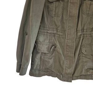 St. John's Bay Women's Khaki Green Distressed Cotton Jacket w Roll Tab Sleeves EUC sz XL
