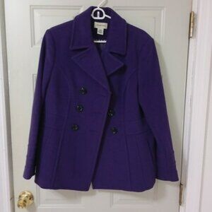 St. Johns Bay Womens Large Purple Double-Breasted Peacoat