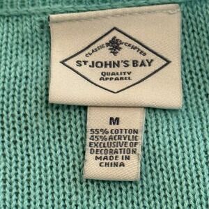 St John's Bay Womens M Sweater Embroidered Mint Green Long Cottagecore Bloomcore