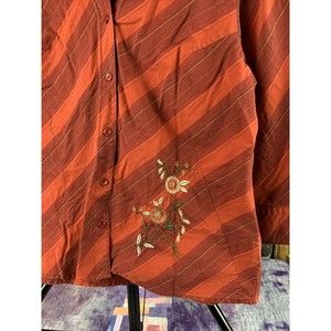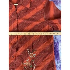 St. John’s Bay Womens Medium 3/4 Sleeve Chelsea Neck Button Up Shirt Embroidered