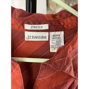 Get ready to rock your casual look with this amazing St. John's Bay women's blouse. This beautiful blouse features red and orange angled stripes that create an eye-catching look. The V-neckline and 3/4 button sleeve type make this blouse perfect for summer and spring seasons. The blouse has a regular fit and is available in medium size, making it an ideal choice for any casual occasion.